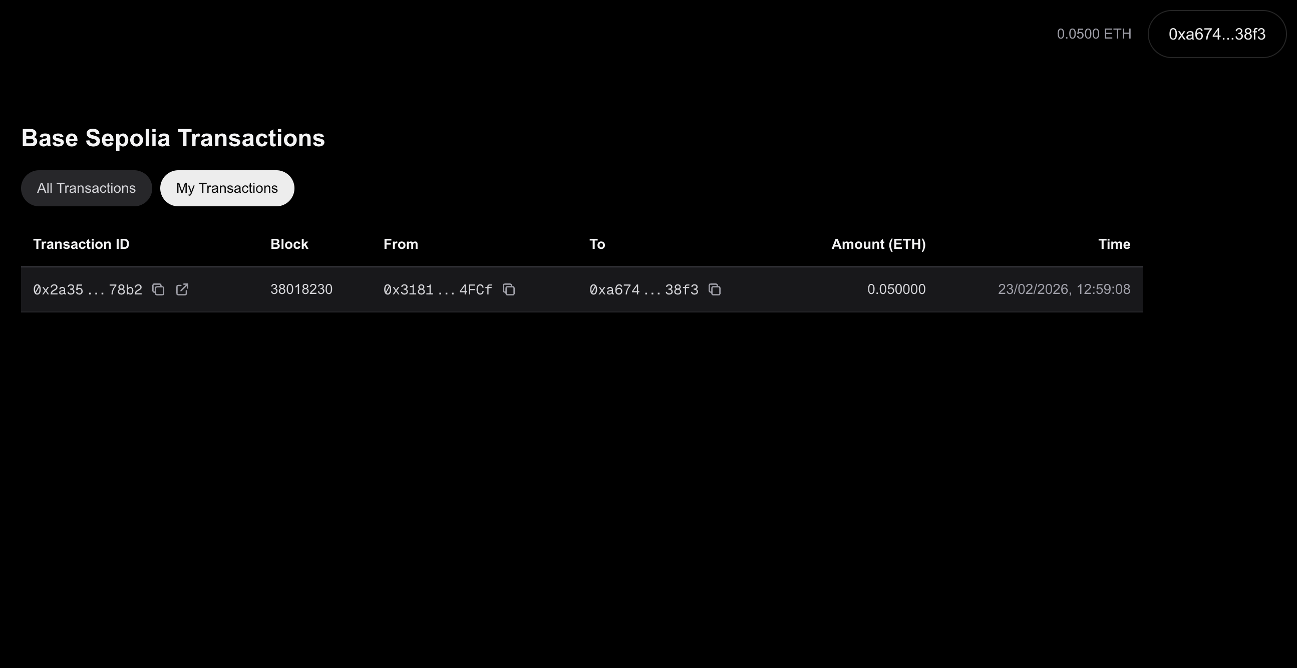 It’s a nice touch to add a callout to open a transaction in the Base Sepolia Explorer