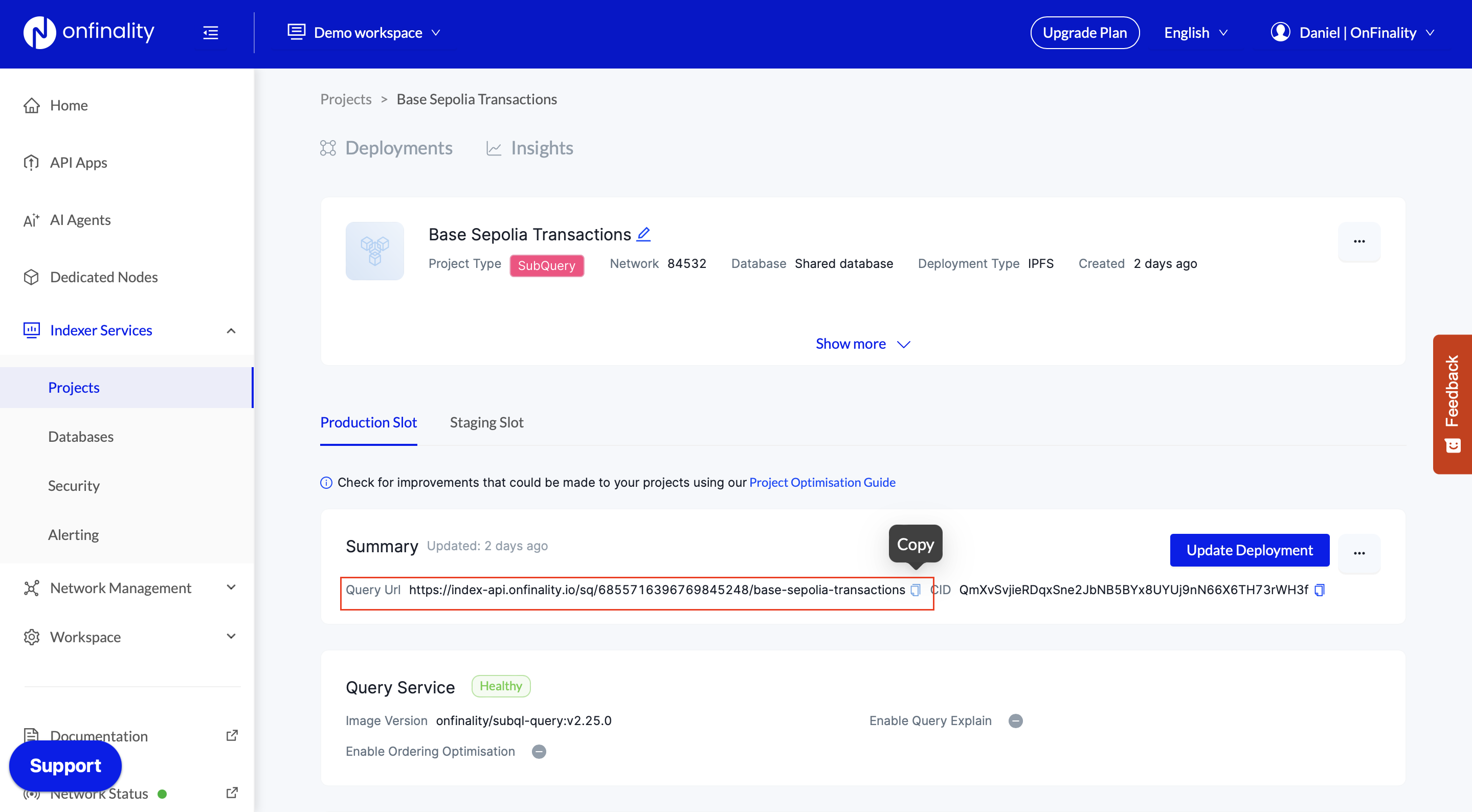 Open your SubQuery project in app.onfinality.io and copy the Query URL