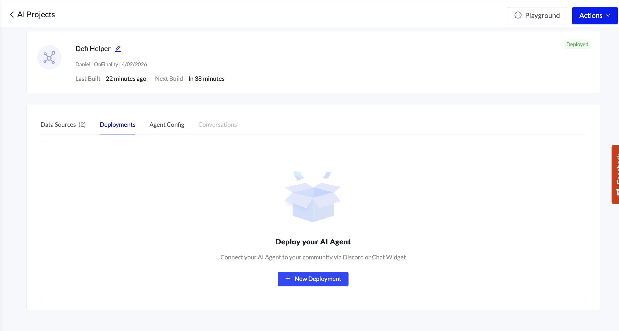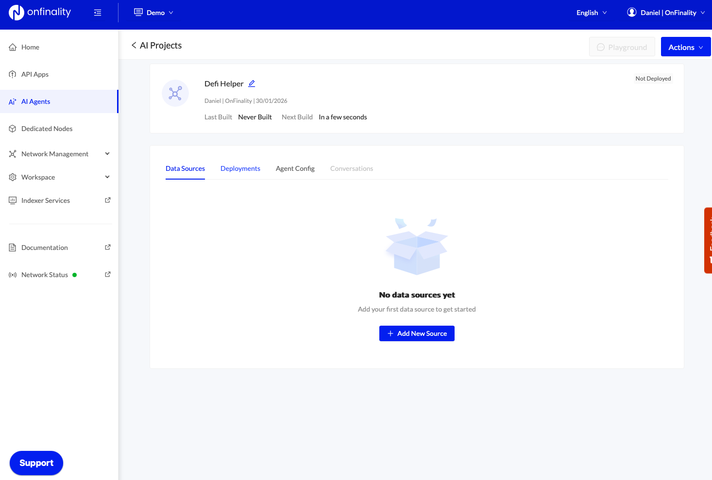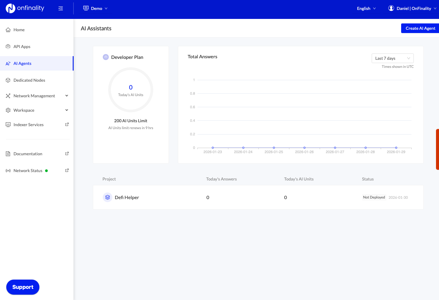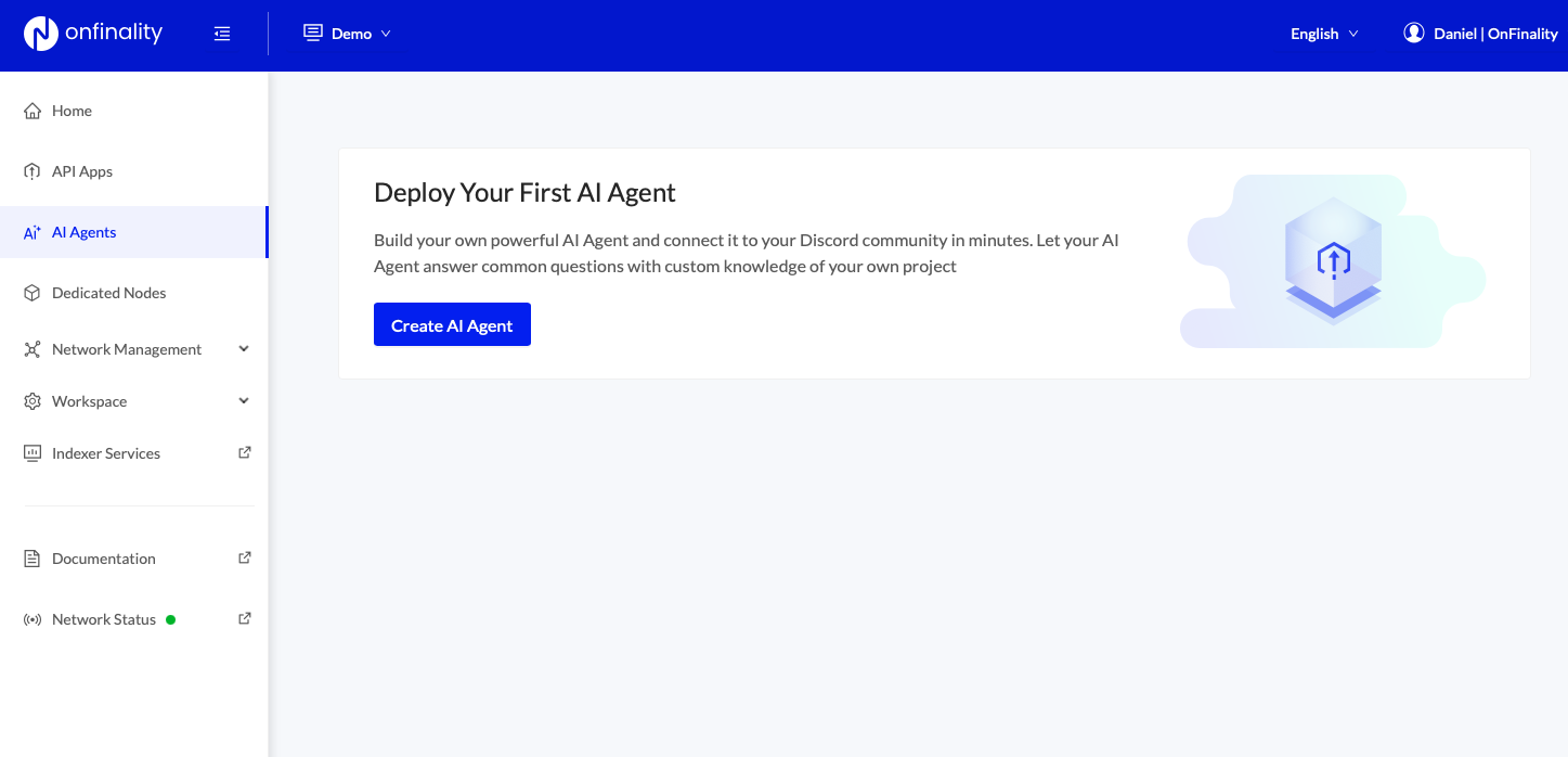 Sign in to your OnFinality account and navigate to the AI Agent menu