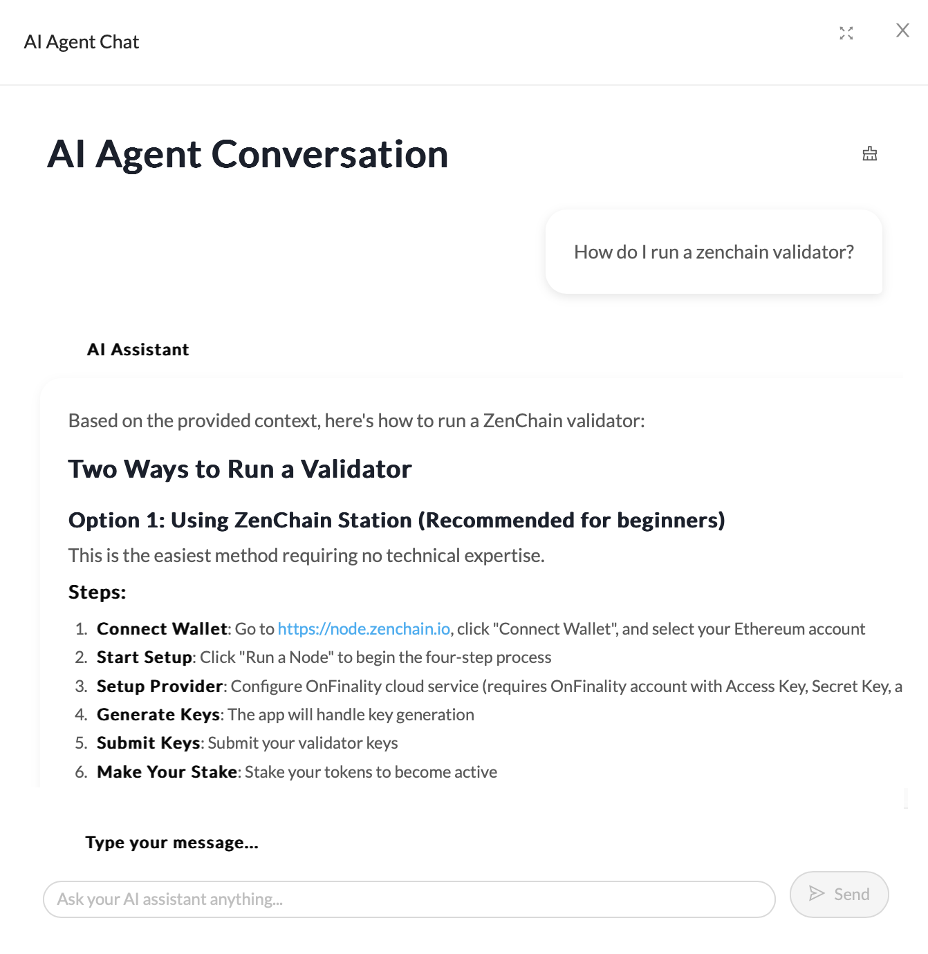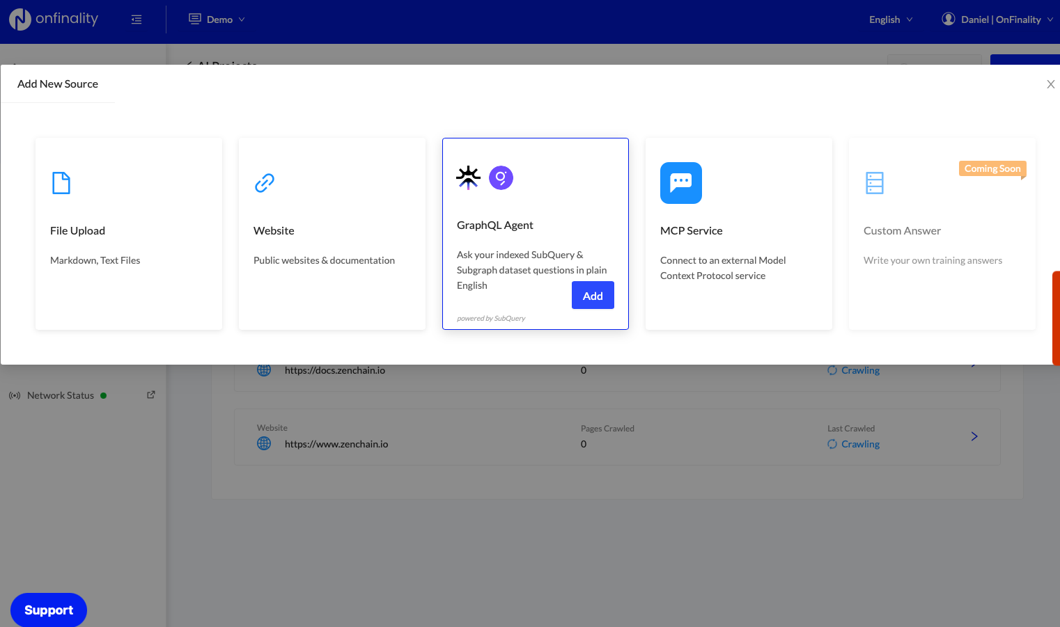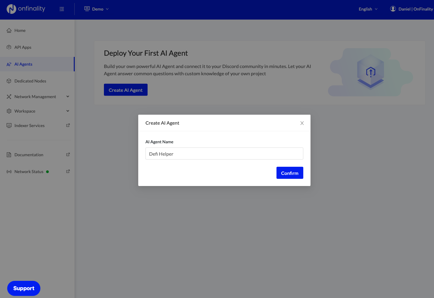 Sign in to your OnFinality account and navigate to the AI Agent menu