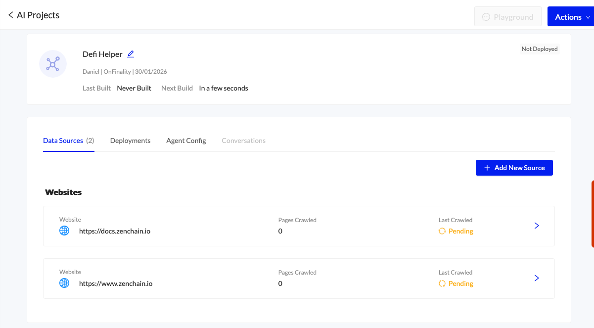 Open your AI Agent and press Add New Source on the Data Sources tab