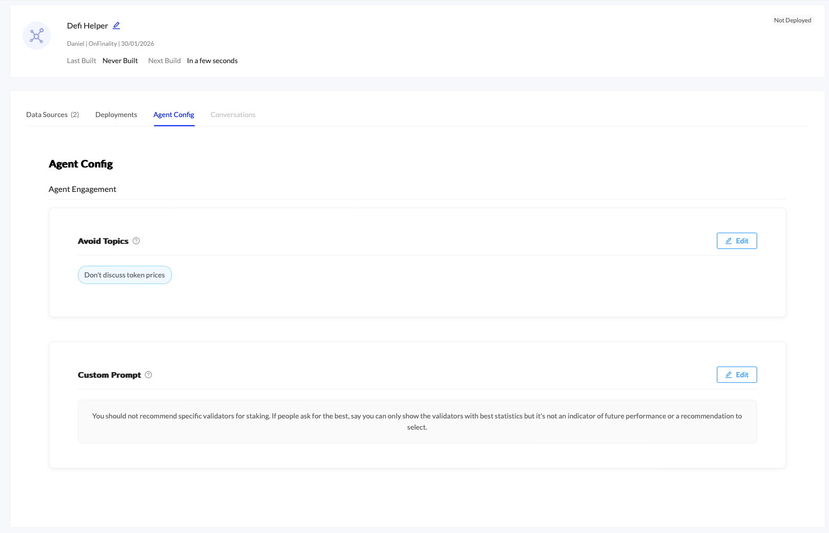 Provide an internal AI Agent Name. This is not customer facing and used only for differentiating your AI Agent inside OnFinality’s platform.