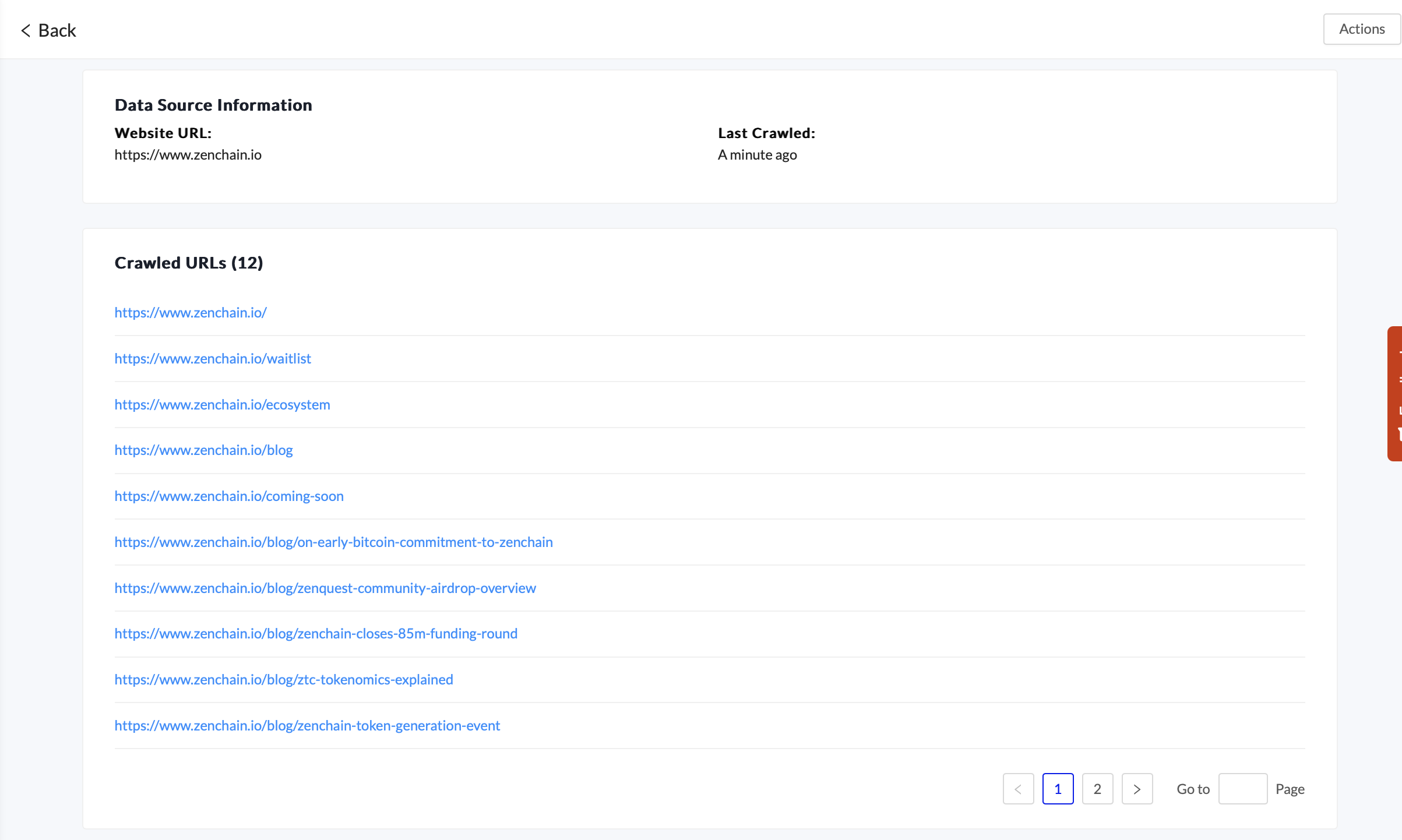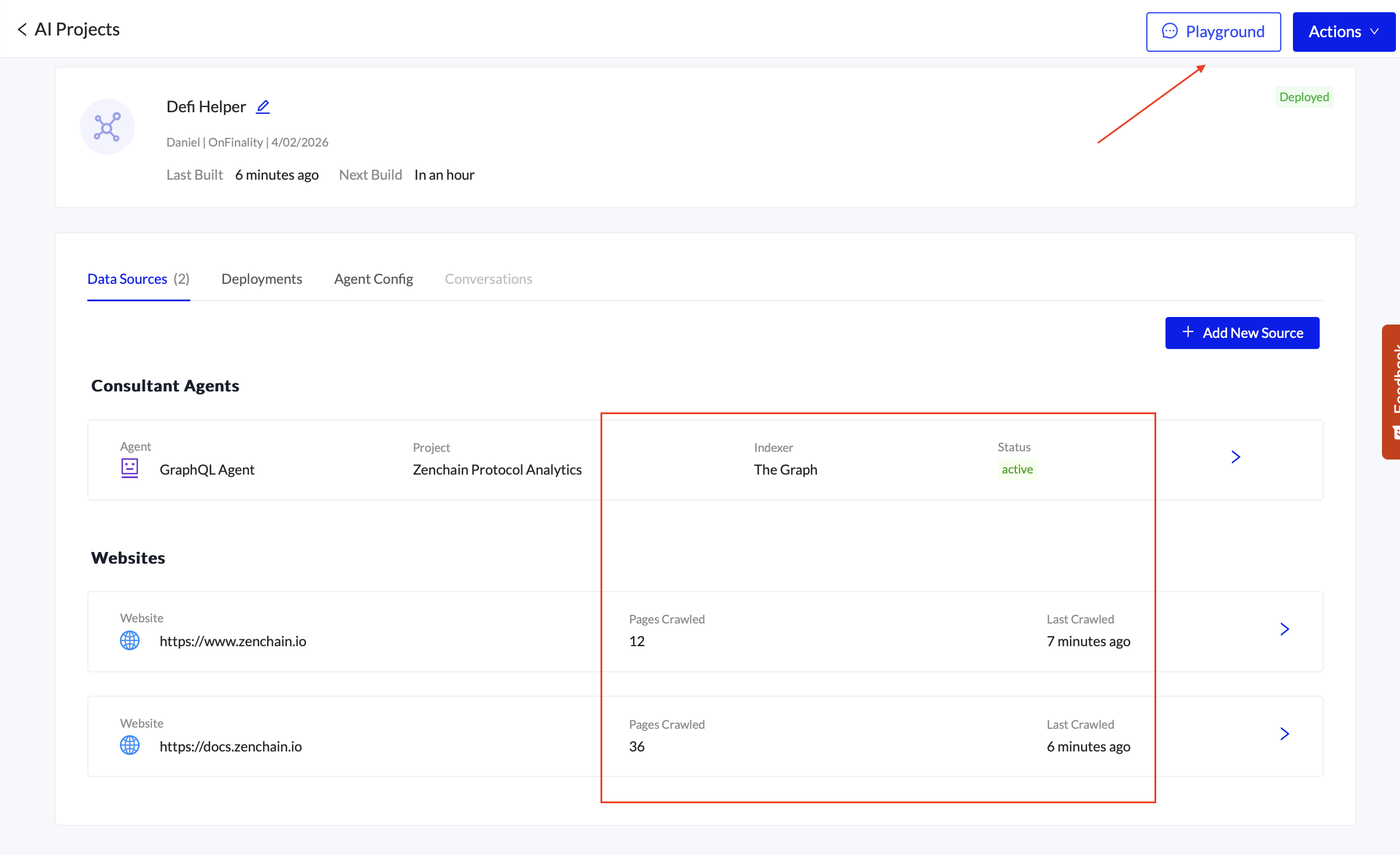 Now that the Data Sources are ready, you can click on each one to view the results, such as pages crawled.
