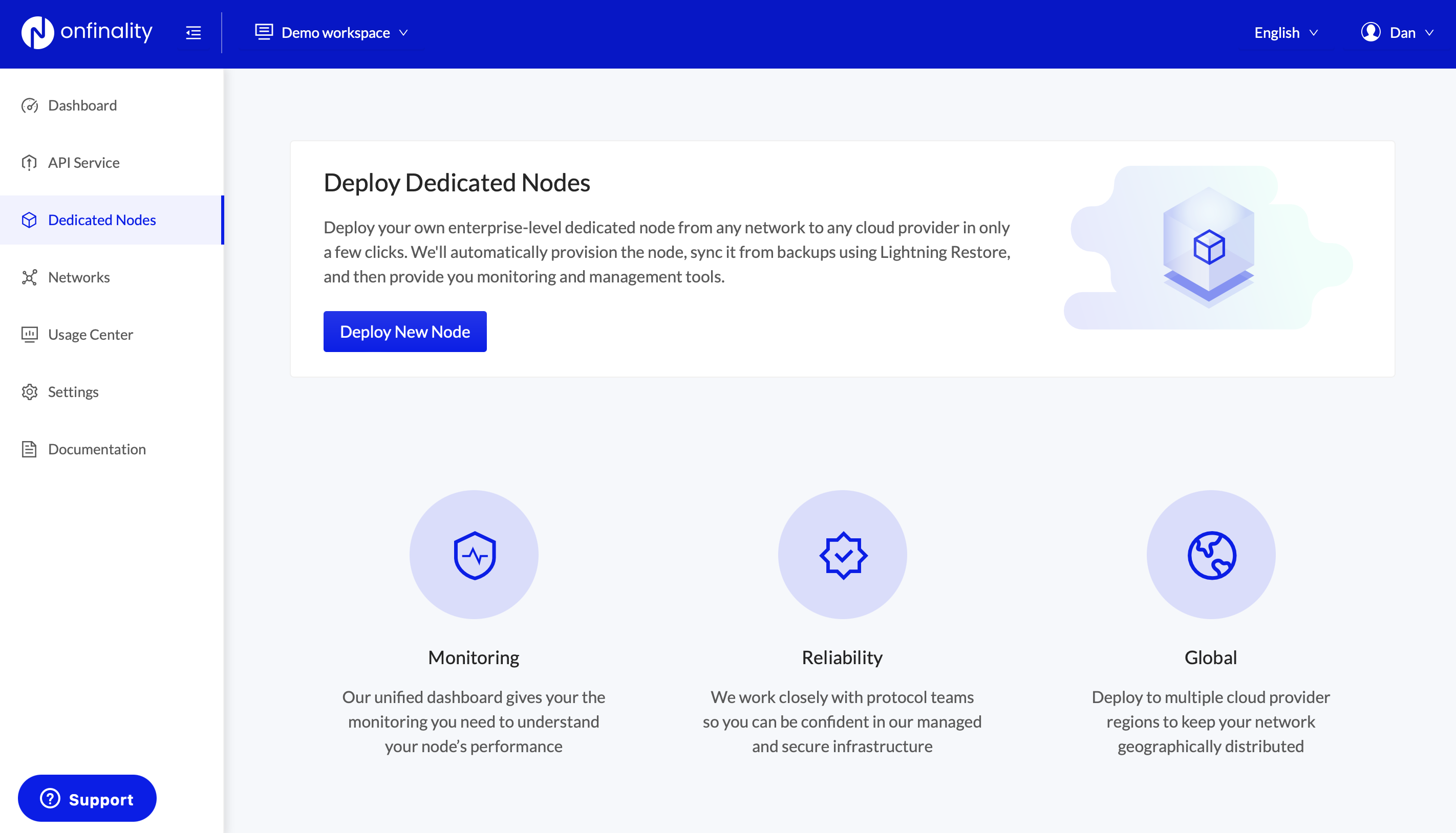 Login to your OnFinality account and go to the Dedicated Nodes page. Here click on Deploy New Node in the centre of your screen.
