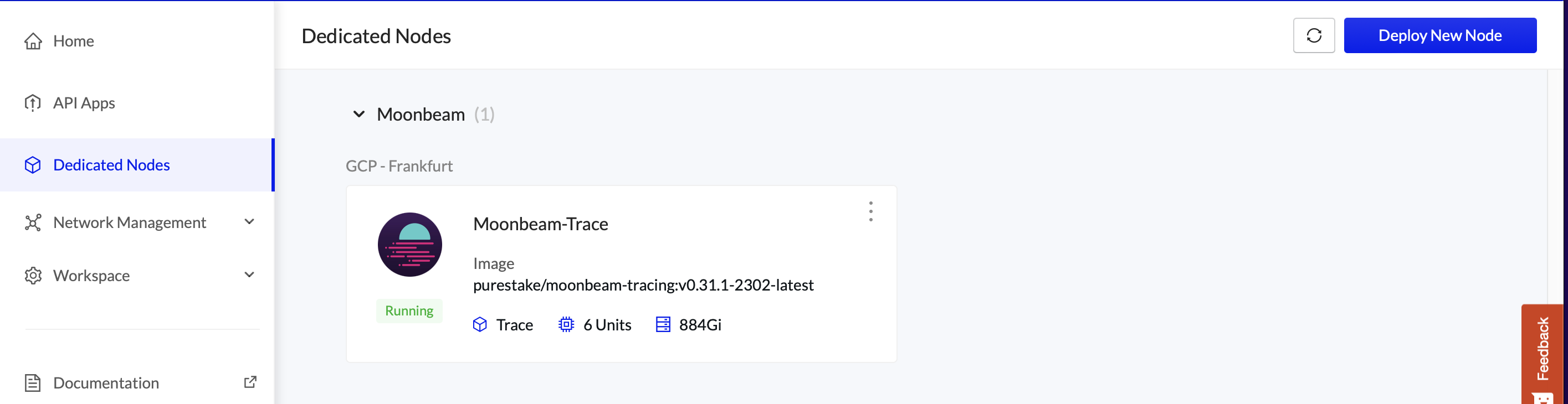 Once your node is successfully deployed, you can find it in the “Dedicated Nodes” section on our portal.