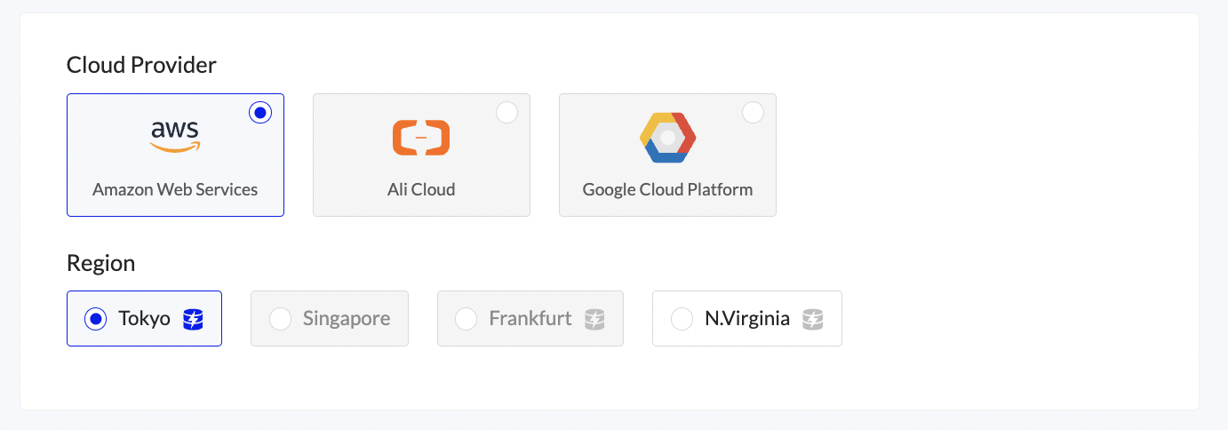 Scroll down to set the Cloud Provider and Region where you will run the node.
