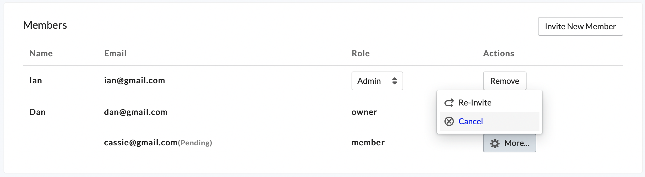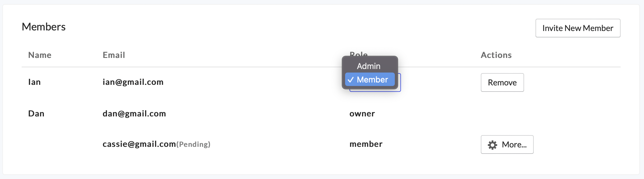 To change a member’s role, simply click the role dropdown for that member and select the new role.