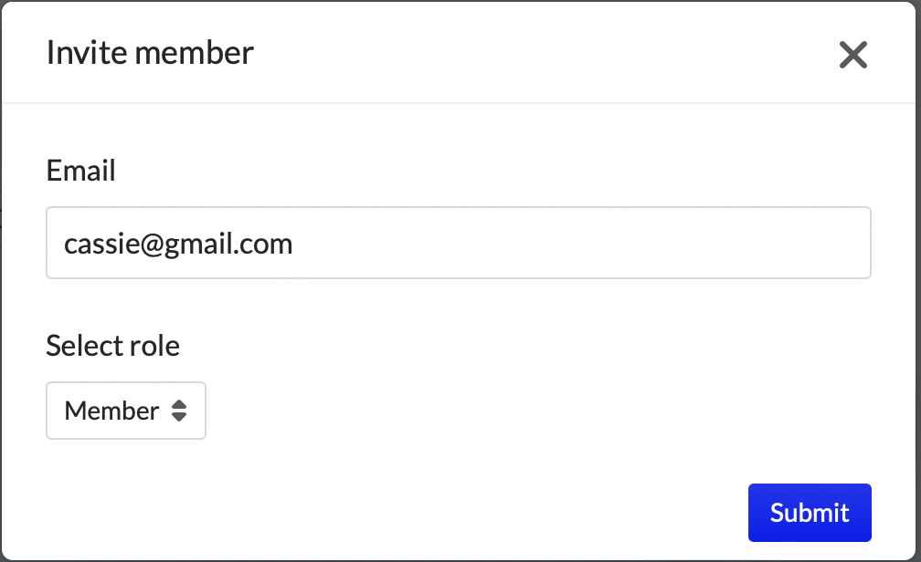 Enter the member’s email address and set their role, then press Submit
