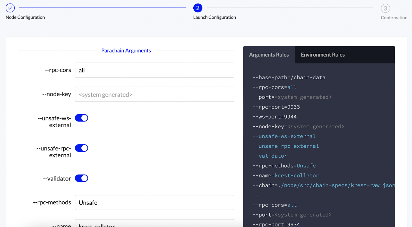 Next, review the node’s Launch Configuration. The recommended settings are usually sufficient, but we recommend comparing with official documentation to be certain.