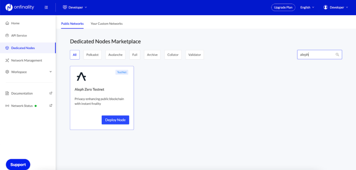 Search for Aleph Zero Testnet and then click “Deploy Node”