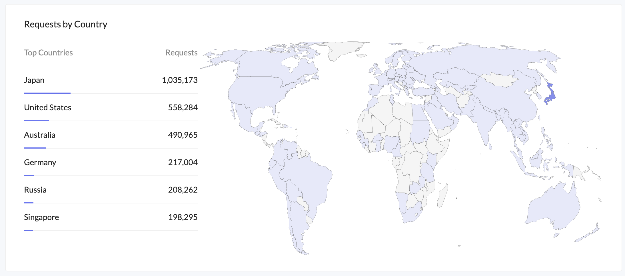 The Requests by Country graph helps you to better understand where in the world your users are.
