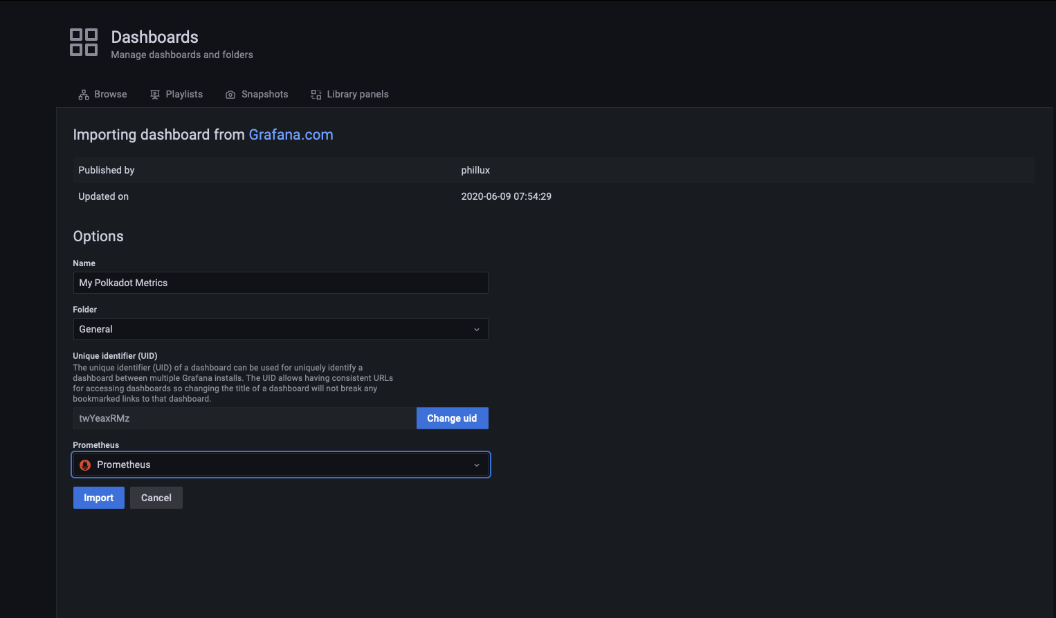 This guide shows how to configure Prometheus and Grafana to create a metrics dashboard for your OnFinality Dedicated nodes. It requires Prometheus and Grafana to be installed and basic knowledge of how to set the Prometheus configuration. For a more in depth guide which starts from zero see Polkadot’s https://wiki.polkadot.network/docs/maintain-guides-how-to-monitor-your-node